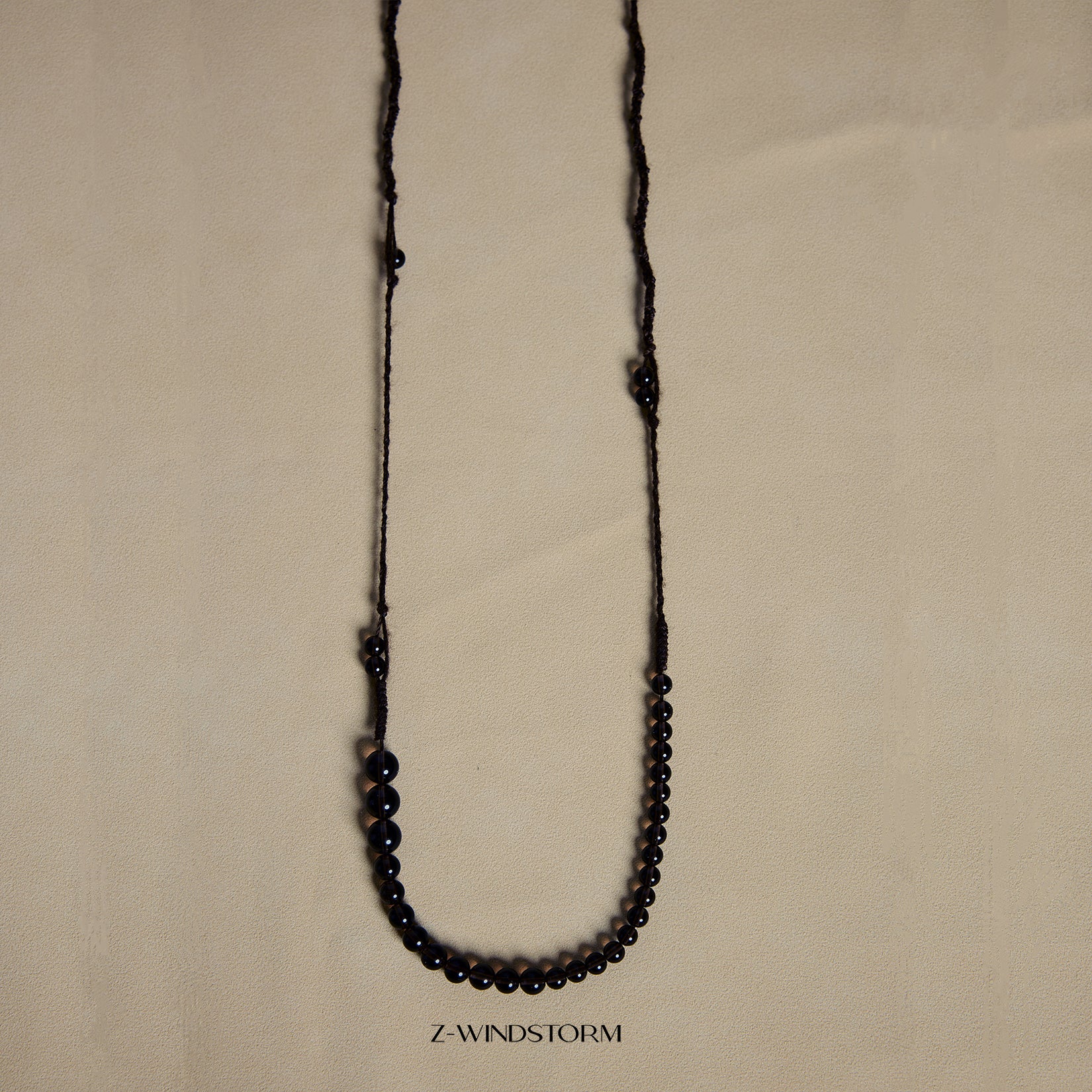 The clear texture of the Smokey Quartz contrasts beautifully with the warmth and softness of wool. It’s a unique feeling, where the soft meets the hard, and warmth collides with cold. The beading and knotting design is characterized by fluidity and continuity, expertly crafted by skilled artisans. Also can be worn as a waist chain.