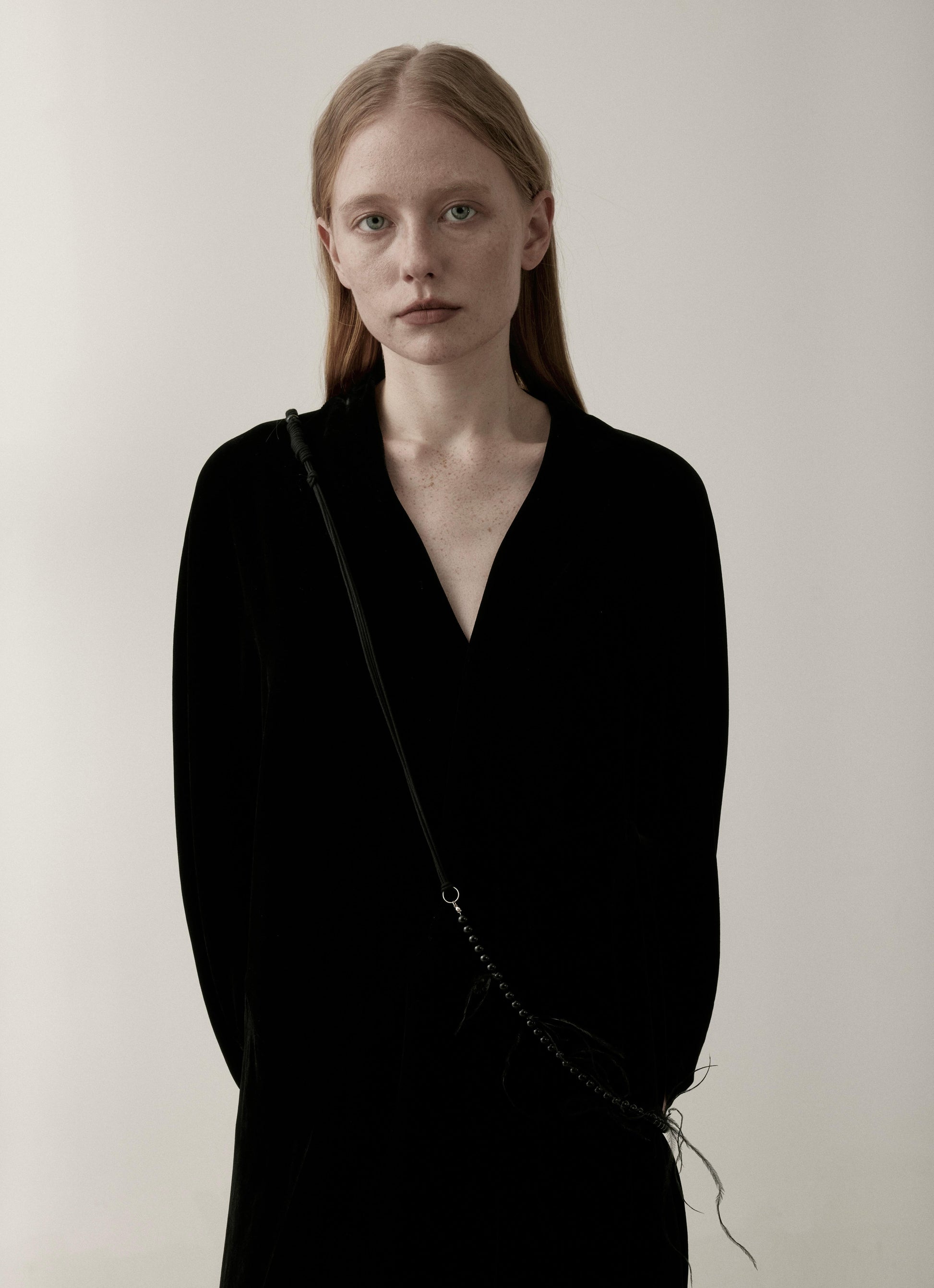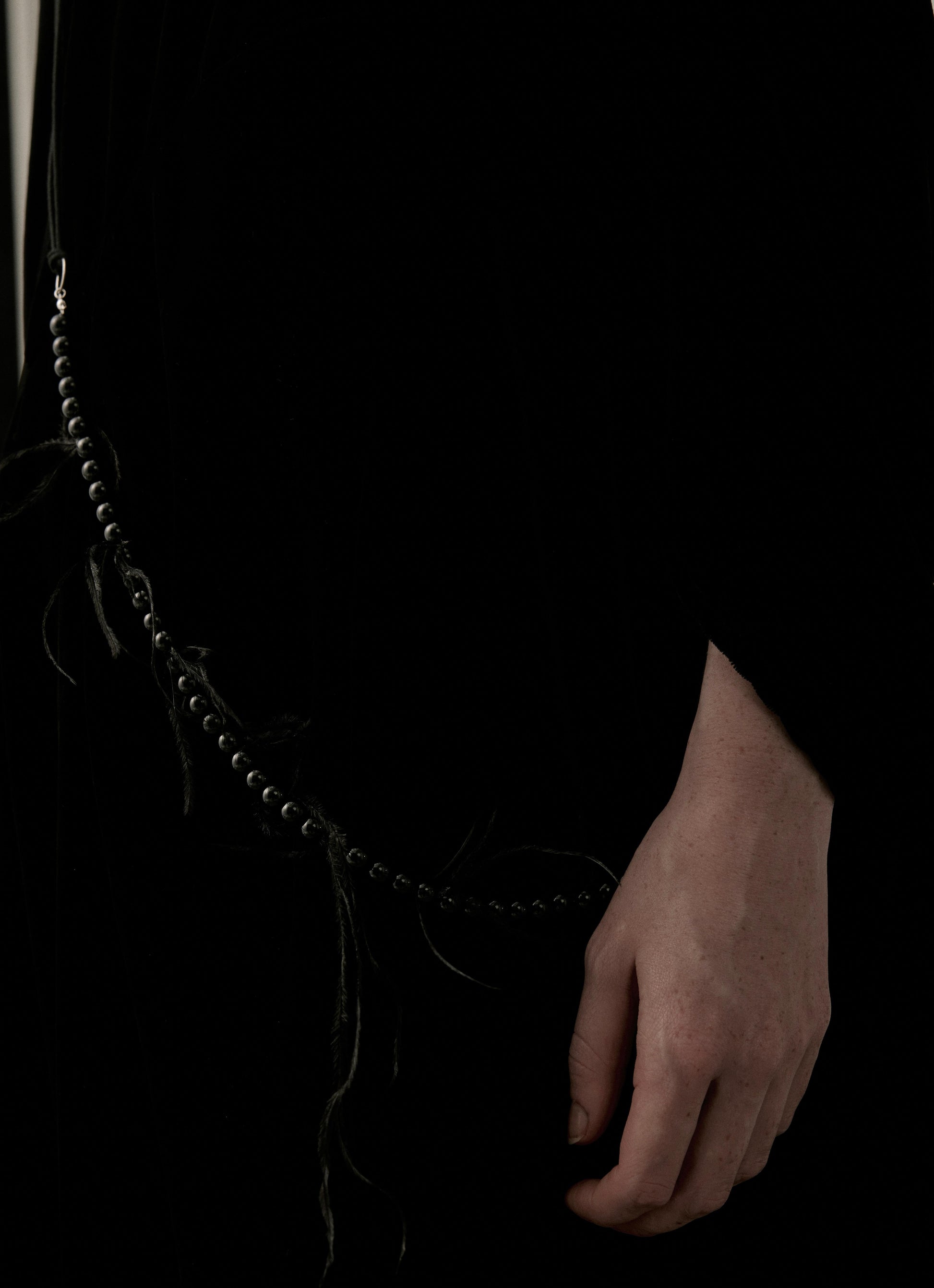 The fusion of black agate beads, silver beads and ostrich feathers offers a bold departure from traditional jewelry, bringing a fresh and exciting aesthetic. The hand-woven cotton cord, adorned with agate beads, flows gracefully and can also be styled as a waist chain or bracelet.